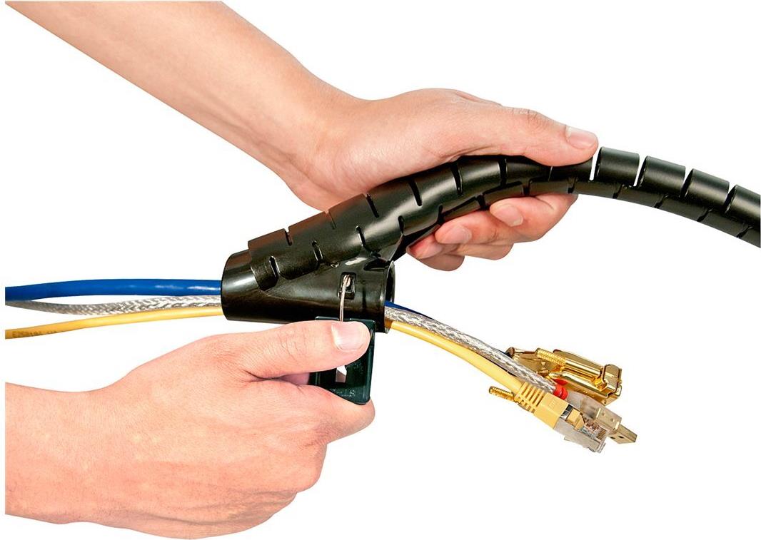 Flexible Kabelspirale mit 25mm Durchmesser, mit praktischer Einziehhilfe zum Verlegen aller Arten von Kabeln.