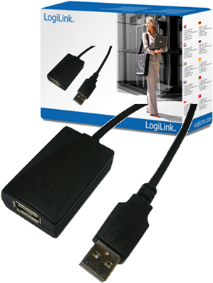 Logilink - USB-Verlängerungskabel - USB (M) bis USB (W) - 5 m (USB/USB 2.0) - aktives Kabel (Signalregenerierung) - Schwarz (UA0001A)