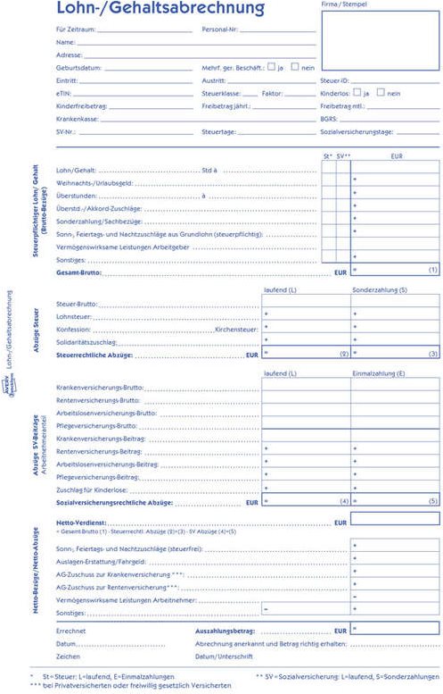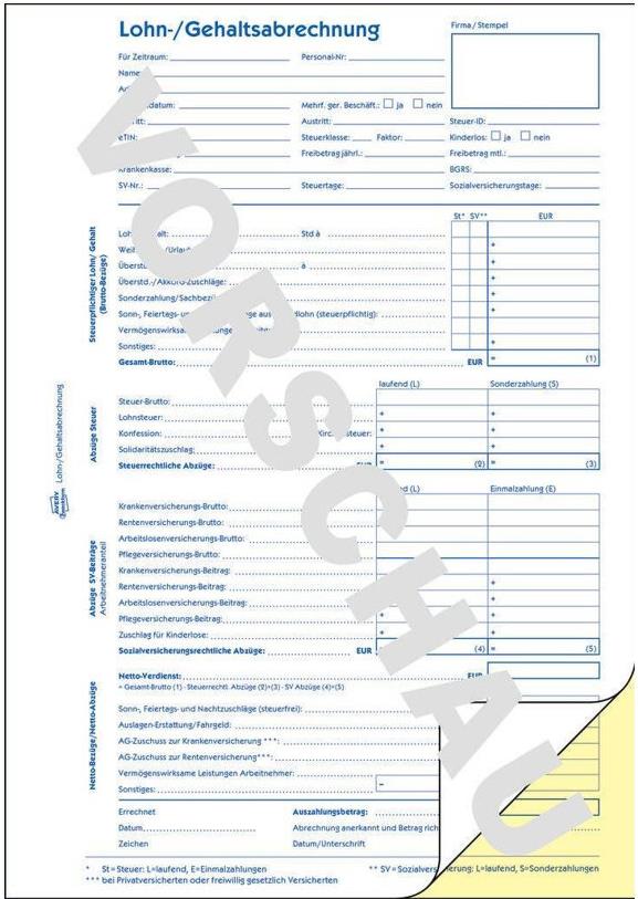 Die Gehalts- und Lohnabrechnung 1759 von AVERY ZWECKFORM im DIN A4 Format wird vom Finanzamt anerkannt. Die 40 original Gehaltsabrechnungen haben jeweils einen vorgedruckten, selbstdurchschreibenden Durchschlag in gelb. Die Lohnabrechnungen und Gehaltsabrechnungen von Avery Zweckform sind zuverlässige, bewährte Hilfen für Buchhaltung, Personalwesen und Steuer und werden regelmäßig von Rechtsexperten geprüft.
