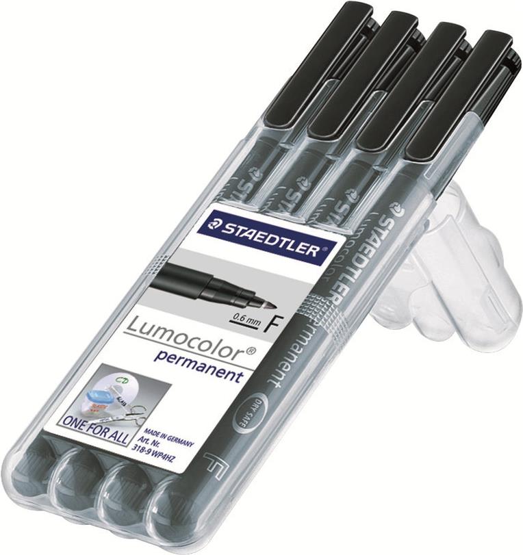 4 STAEDTLER Lumocolor Folienstifte schwarz 0,6 mm permanent (318-9WP4)