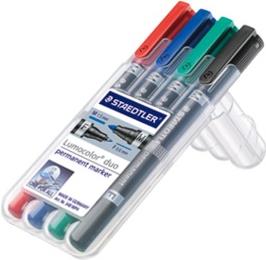 4 STAEDTLER Lumocolor duo Permanentmarker farbsortiert 0,6 - 1,5 mm (348 WP4)