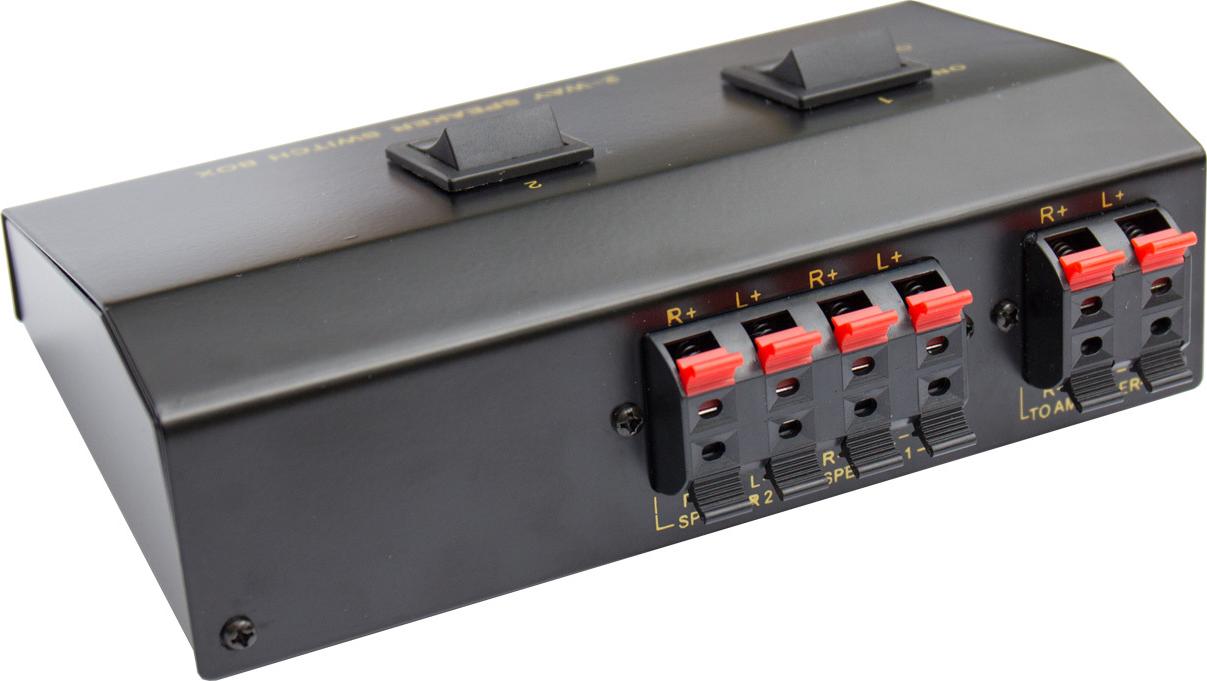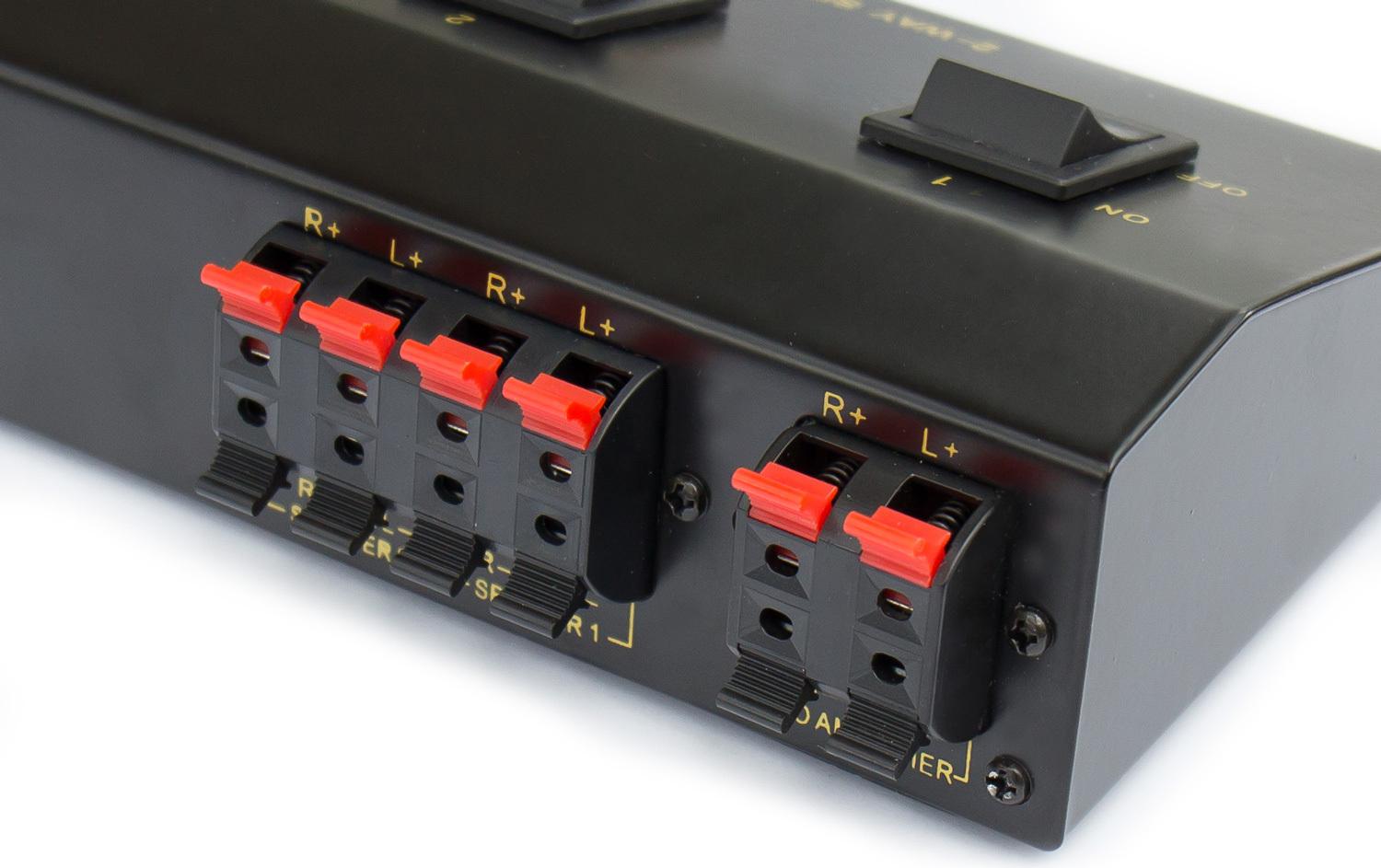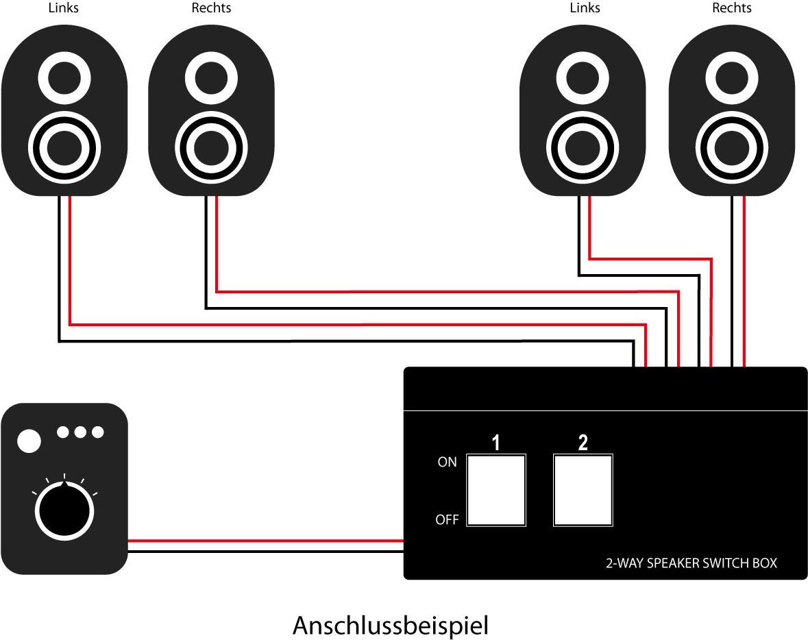 An diese Lautsprecher-Umschaltbox können zwei Lautsprecherpaare angeschlossen und geschaltet werden. Das Gehäuse der Umschaltbox besteht aus stabilem Metall, die Schalter aus Kunststoff. Die farbig markierten ...