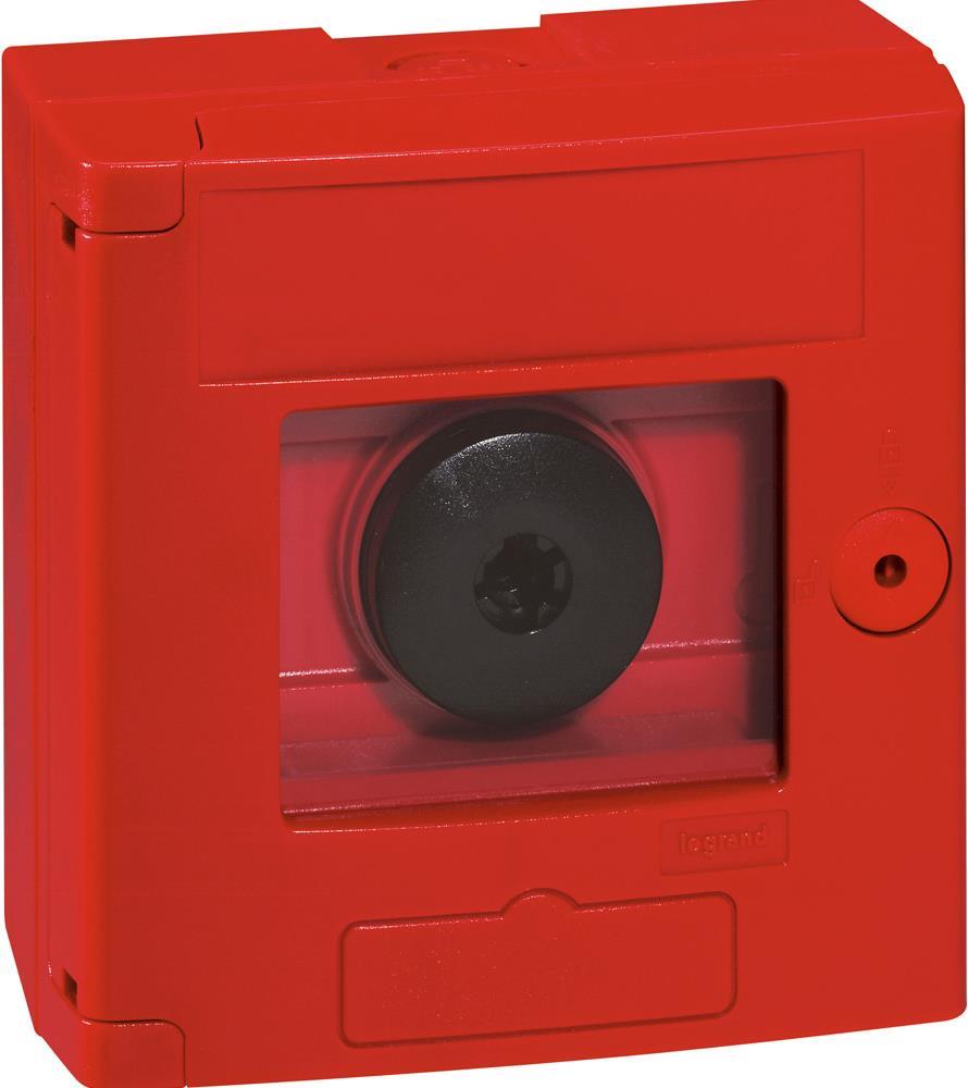 Öffnen des Gehäuses mittels Schraubendreher. Taster mit zwei Positionseinstellungen zur manuellen Betätigung oder zur automatischen Betätigung durch Einschlagen der Scheibe. Mit drei Vorprägungen M20 für ...