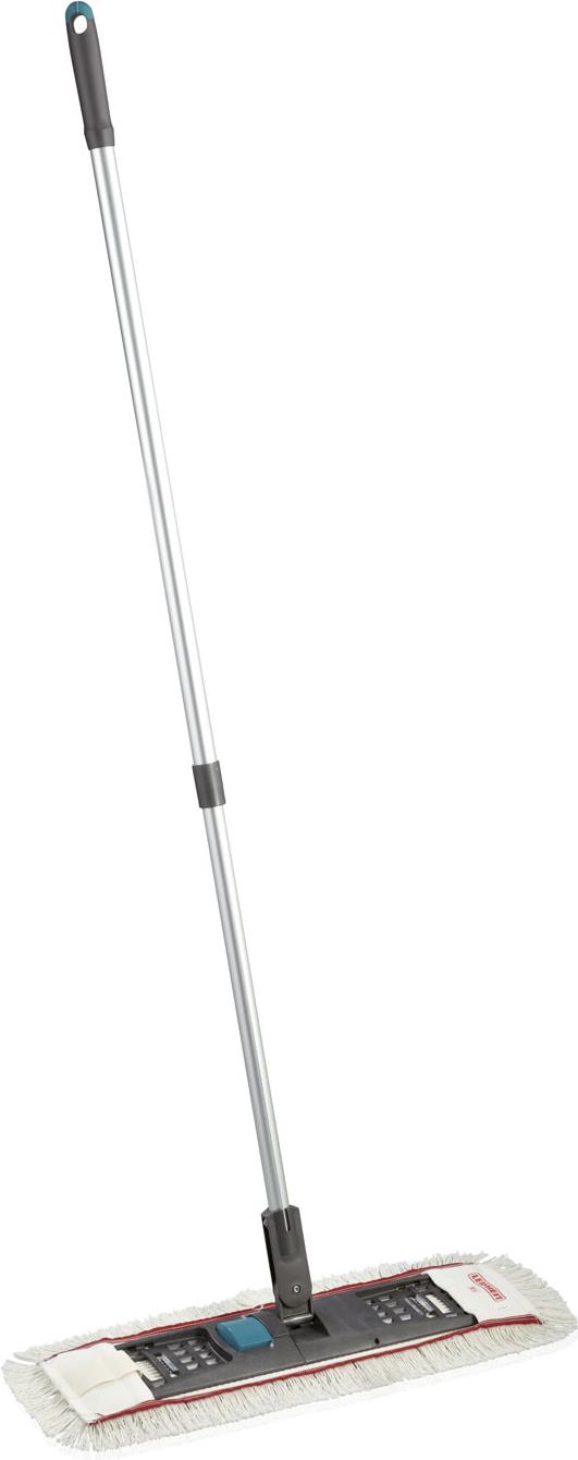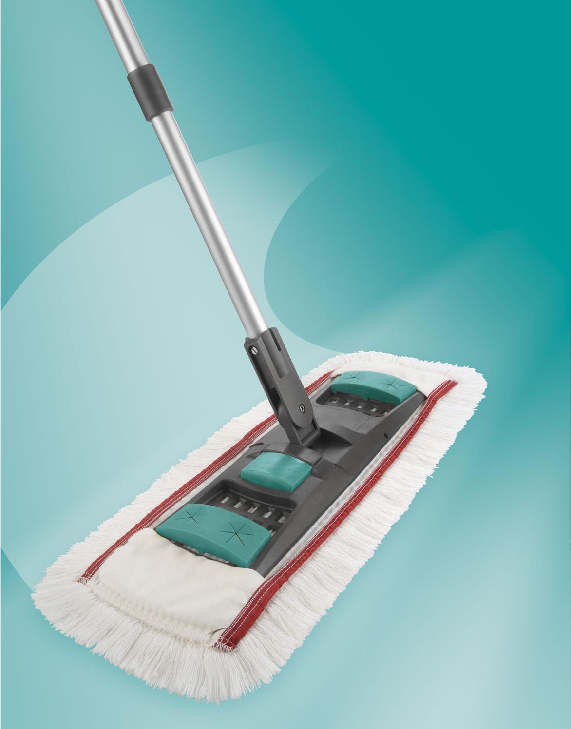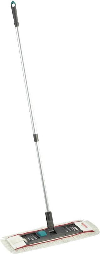 Macht die Reinigung von Fliesen, Steinböden und anderen glatten Untergründen in Gaststätten, Praxen und Ladengeschäften schneller, leichter sowie effektiver - der professional Bodenwischer von Leifheit. Denn wer dieses Flachwisch-System von Leifheit kauft, der profitiert von der patentierten Fußtaste. Diese macht es möglich, den Wischbezug ganz ohne Bücken im Stehen vom Leifheit Wischer zu lösen. Das Fixierband sorgt dafür, dass der Wischbezug im Anschluss in der separat erhältlichen Handhebelpresse ausgewrungen werden kann - ganz ohne die Hände im Schmutzwasser. Damit auch schwer zu erreichende Stellen unter Möbeln, Treppen sowie Ecken gründlich geputzt werden können, ist der Professional Bodenwischer von Leifheit mit einem 360°-Drehgelenk ausgestattet. Der Teleskopstiel des Produkts ist von 105 cm bis 175 cm ausziehbar und rechts/links arretierbar. So kann jeder seine individuelle Arbeitshöhe einstellen. Besonders praktisch ist die Anti-Rutschsicherung an der Griffkappe, denn diese verhindert das Umfallen des Stiels, wenn er an die Wand gelehnt wird.