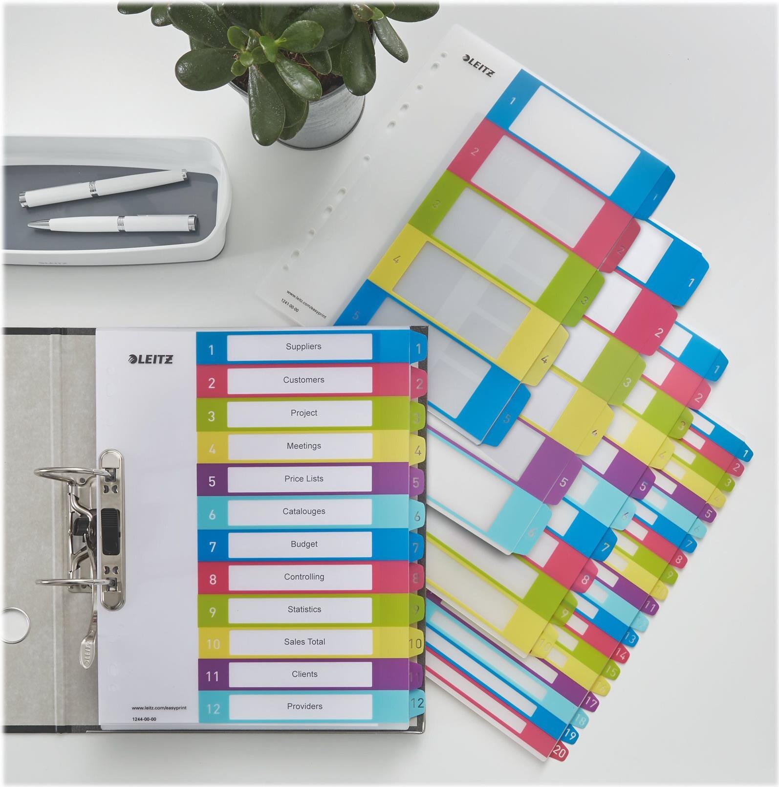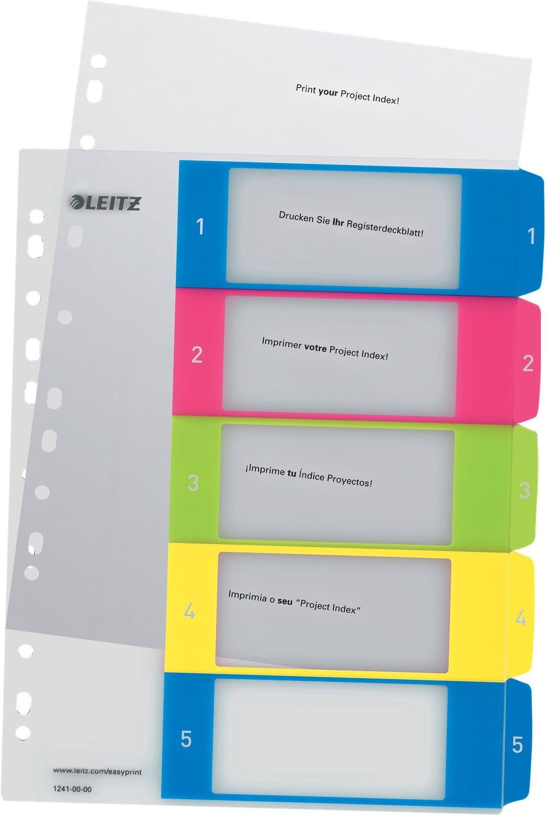 Wiederverwendbares, extra langlebiges Register in lebhafter Farbkombination. Das A4-Deckblatt kann beliebig oft ausgetauscht und das Register so immer wieder verwendet werden.