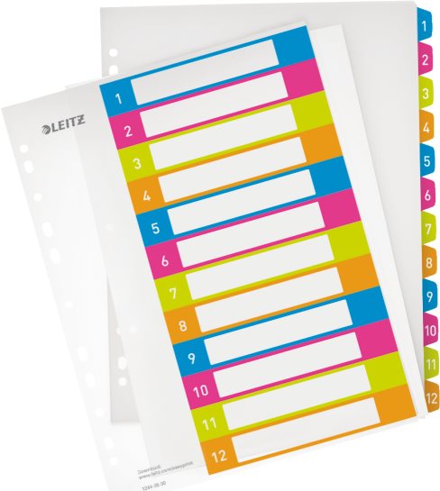 Leitz 12440000 - Mehrfarben - Polypropylene (PP) - Numerisch - Porträt - A4+ (1244-00-00)