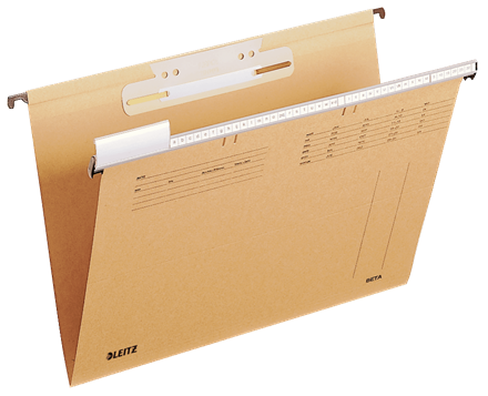 LEITZ Einsteck-Heftstreifen, 38 x 158 mm, PVC, sand für ALPHA und BETA Hängeregistratur, zum Einstecken in Hänge-, Pendel- und Einstellmappen, -taschen und -sammler, Hartfolie, Lochung: 60/80 mm, Inhalt: 25 Stück (6130-00-12)