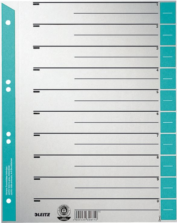 Leitz Trennblatt - farbig bedruckt - Blau - Grau - Pappe - Numerisch - A4 (16520030)