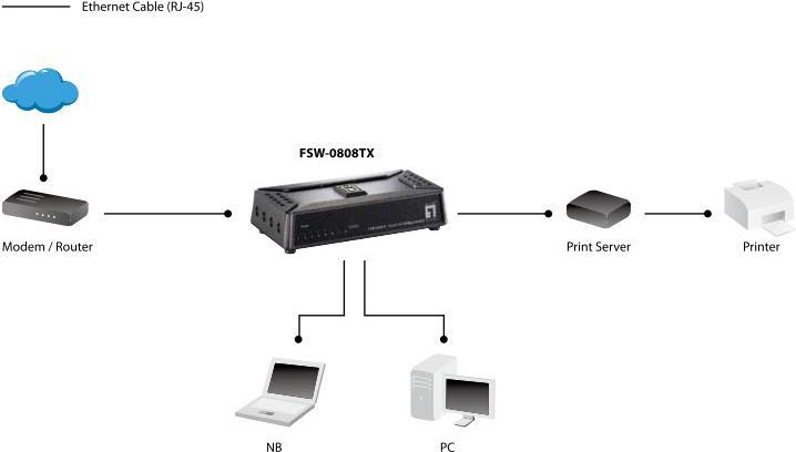 Der LevelOne FSW-0808 ist ein Wire-Speed und Non-blocking Fast Ethernet Switch, der 8x 10/100Mbps Ethernet-Ports zur Verfügung stellt. Alle Ports unterstützen Auto-Negotiation und Auto-MDI/MDIX, wodurch die Notwendigkeit für Crossover-Kabel oder Uplink-Ports entfällt. Jeder Port kann als allgemeiner Netzwerk-Port oder als Uplink-Port für einem Router, Server, Hub oder einen anderen Netzwerk-Switch eingesetzt werden.