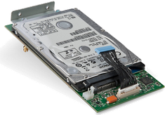 Eine Festplatte (320 GB Mindestkapazität) kann zum Puffern von Druckaufträgen, Sortieren umfangreicher Aufträge oder zum Speichern von Formularen, Schriften oder Makros verwendet werden.
