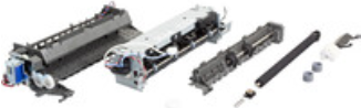 Das Fixierer-Wartungskit umfasst die Fixierstation, Umlenkeinheit, Übertragungsrolle, Einzugsrollen und weitere Ersatzteile. Die Installation des Kits wird nach jeweils 200.000 Seiten empfohlen (bei durchschnittlich 3 Seiten pro Auftrag und ca. 5 % Deckung).