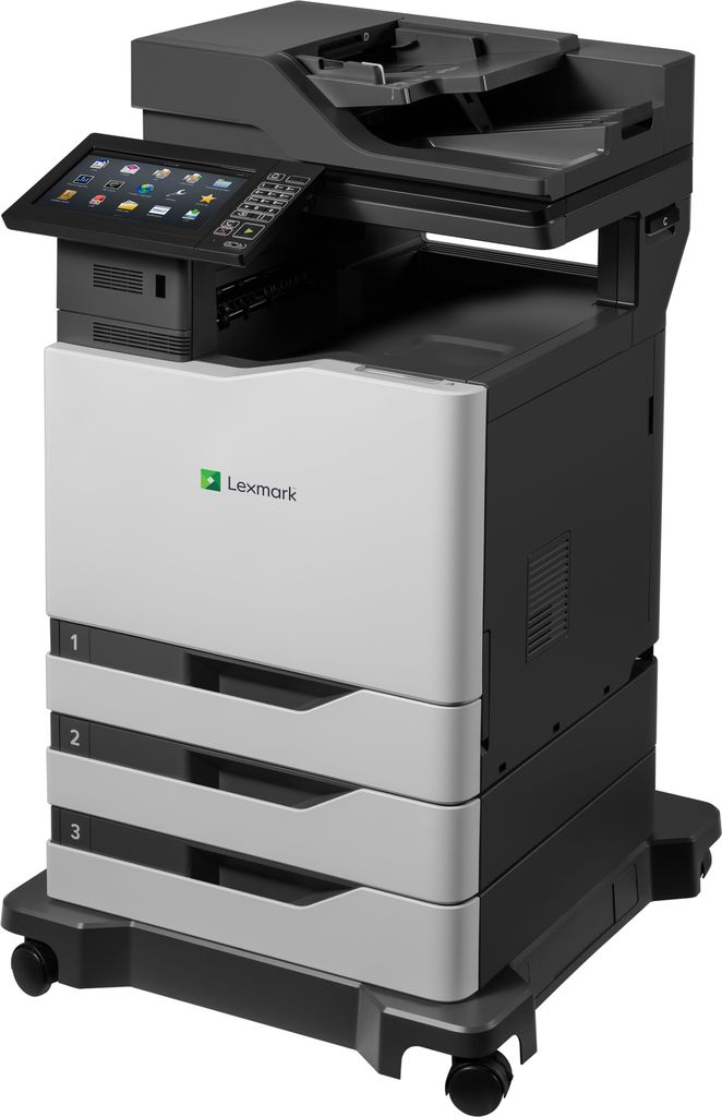 Der Lexmark CX825dte A4-Farb-MFP vereint eine Druckgeschwindigkeit von bis zu 52 Seiten pro Minute, Bedienerfreundlichkeit und professionelle Farbe mit konfigurierbaren Softwarelösungen. Ein 25 cm großer e-Task-Farbtouchscreen verfügt über eine sehr glatte Oberfläche, die mit nahezu allem bedient werden kann, einschließlich Stifte, Fingerspitzen oder Nägeln, auch ohne Druck oder direkten Hautkontakt. Der leistungsstarke Grafikchip, die Standard-Zuführungskapazität von 1.750 Seiten (erweiterbar auf 4.500) und eine monatliche Ausgabe von bis zu 250.000 Seiten werden um einen optionalen Hefter oder Heft- und Loch-Finisher erweitert, der mit A3-Produktionskopierern vergleichbar ist. Um Wartung und Ausfallzeiten zu reduzieren, verfügt der Drucker über langlebige Fotoleitereinheiten sowie Tonerkassetten mit hoher Kapazität – ideal für Umgebungen mit großen Produktionsmengen.