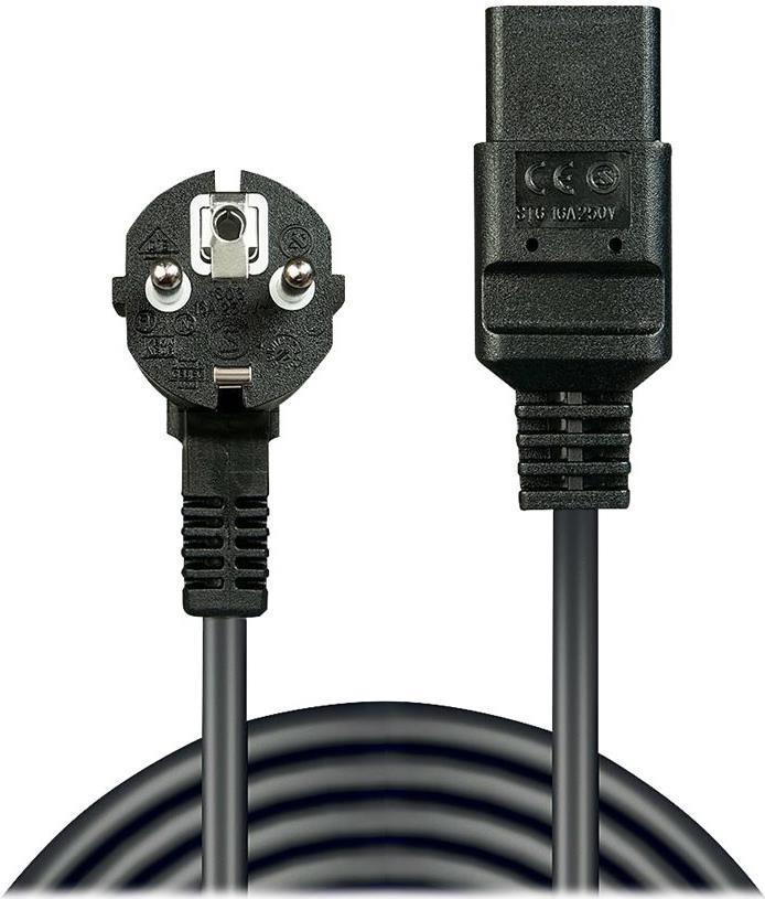 Schuko-Netzstecker an IEC C19 Kaltgerätebuchse.