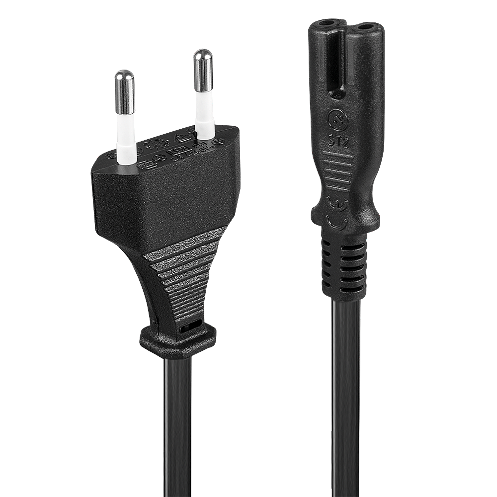 Euro Netzstecker an IEC C7 Kaltgerätebuchse.