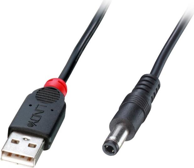 USB Typ A Stecker an DC-Stecker (5.5mm Außen-/2.1mm Innendurchmesser).