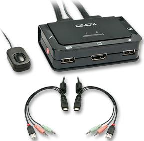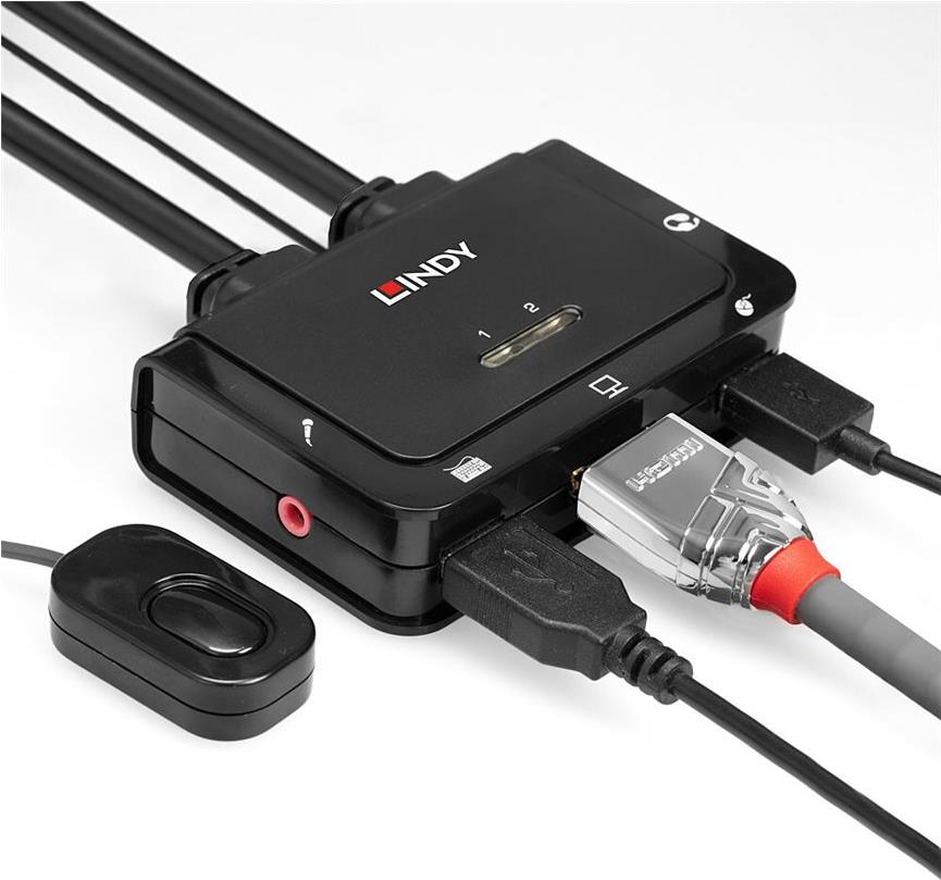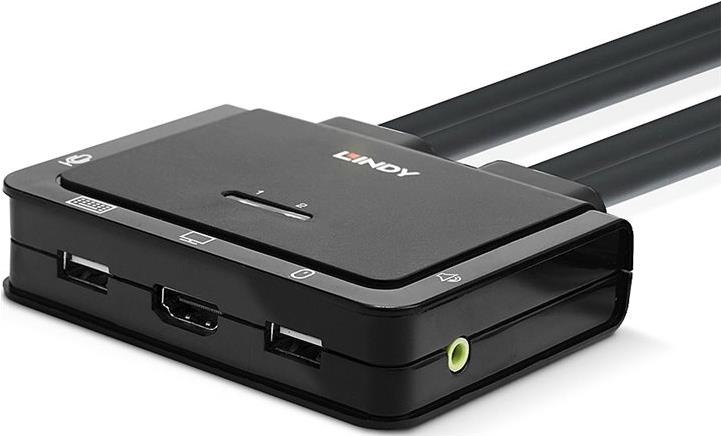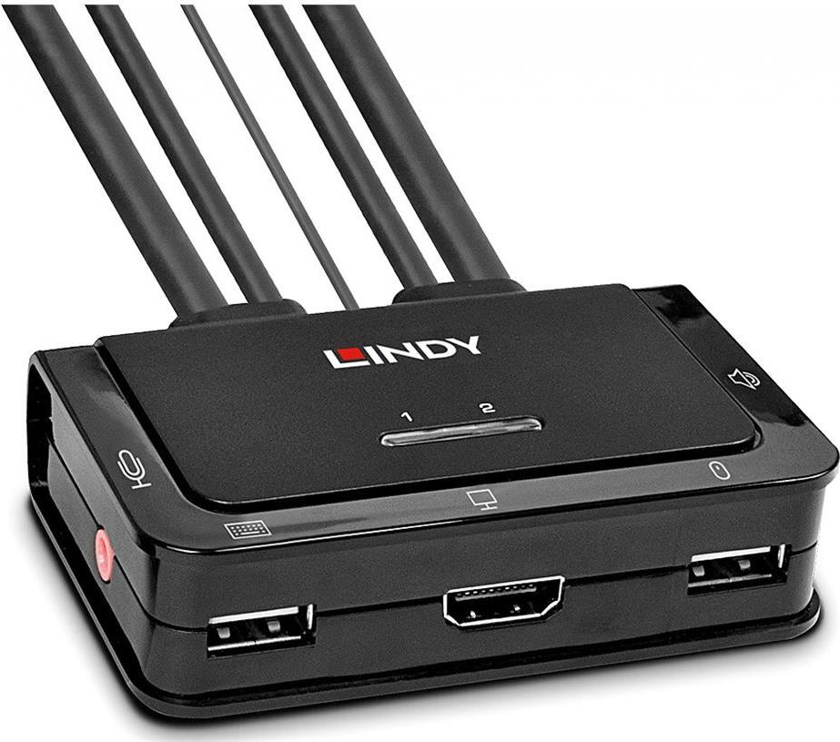 Lindy 2 Port Kabel KVM Switch, HDMI 10.2G, USB 2.0 & Audio Schaltet zwischen 2 HDMI-PCs mit einer einzigen Konsole aus Tastatur, Maus & Monitor (42340)