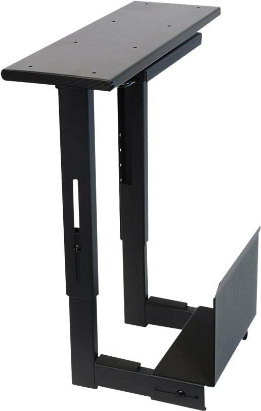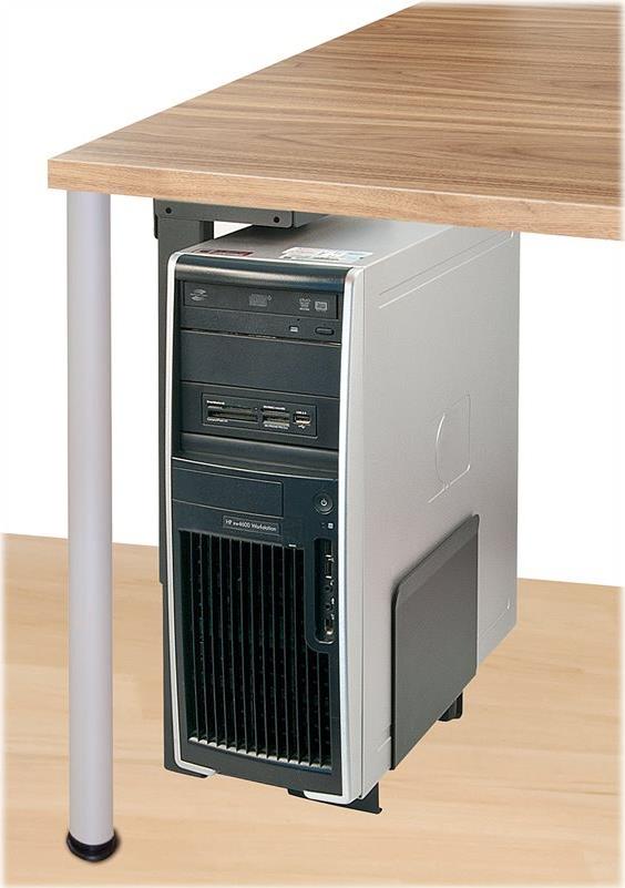 Drehbare und ausziehbare Halterung, befestigt Ihren PC komfortabel unter dem Schreibtisch und schützt ihn vor Staub und Schmutz, aus pulverbeschichtetem rostfreiem Stahl.