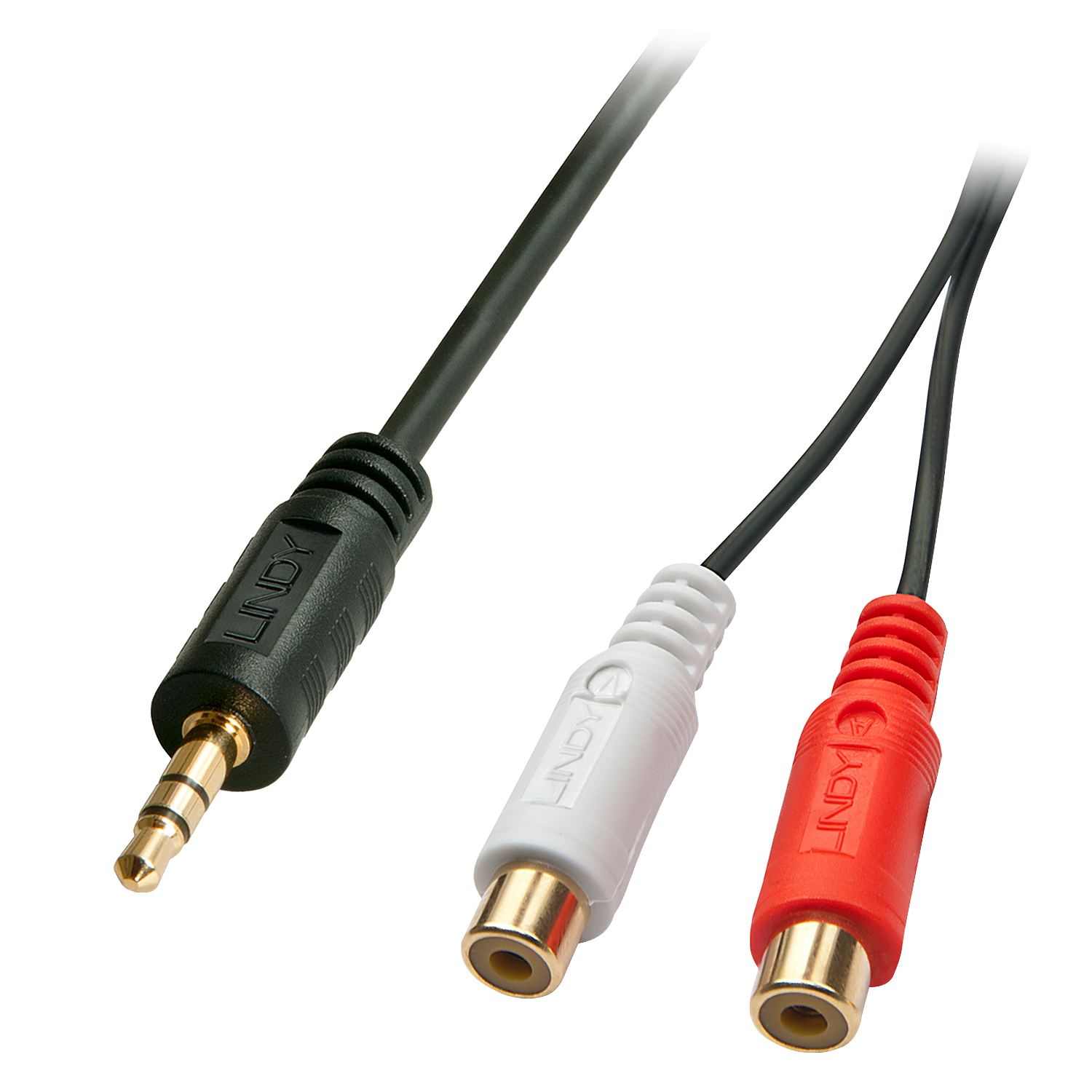 Lindy Premium - Audio-Adapter - 0,08 mm² - RCA x 2 (W) bis Mini-Phone Stereo 3,5 mm (M) - 25cm - abgeschirmt - Schwarz (35678)