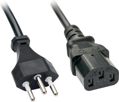 Schweizer Netzstecker an IEC C13 Kaltgerätebuchse.