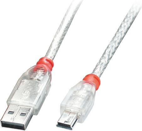 Lindy - USB-Kabel - USB (M) bis Mini-USB, Typ B (M) - 1,0m (USB/USB2.0) - geformt - durchsichtig (41782)