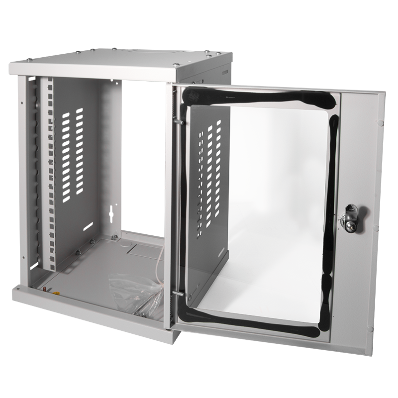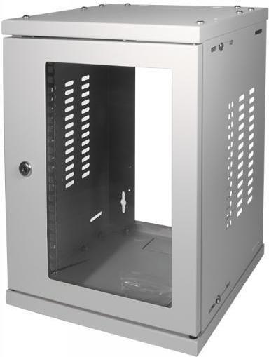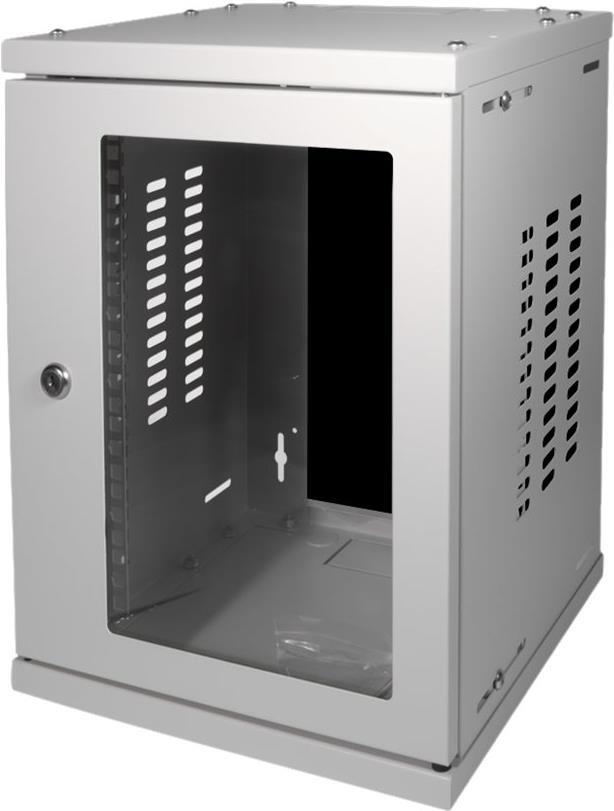 LogiLink 25,40cm (10") Wandverteiler SoHo, montiert, 8 HE, lichtgrau (RAL7035), 1,2 mm Stahl, Glastür mit Zylinderschloss, - 1 Stück (W09Z33G)