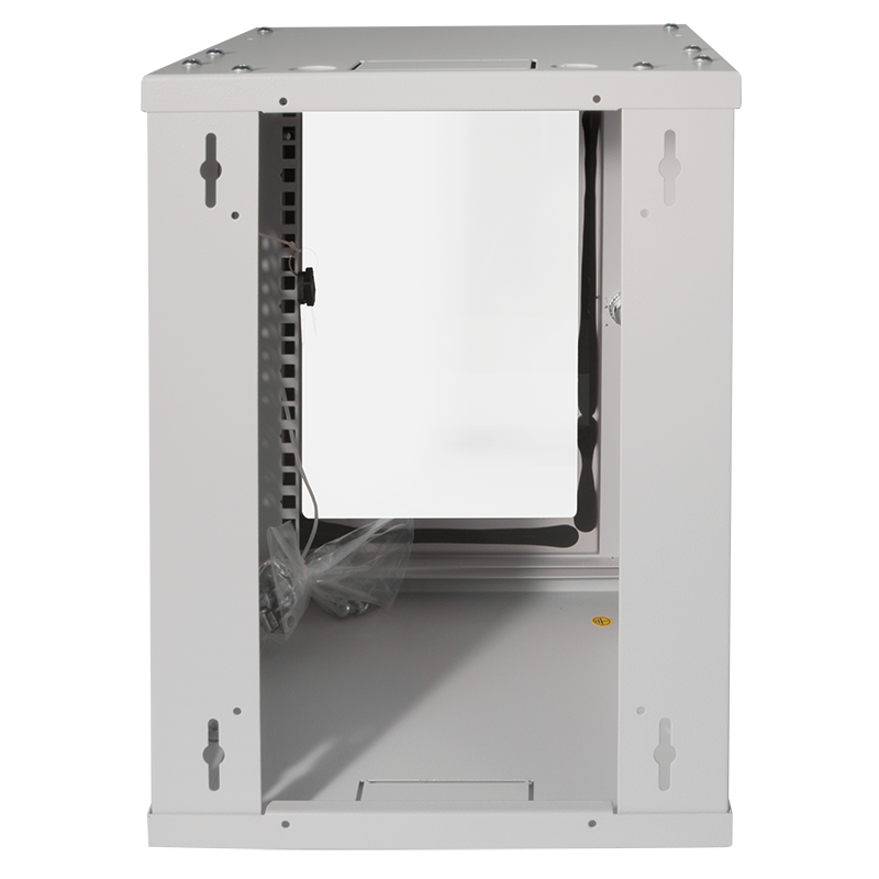 Abschließbare Vorderklappe, Glastür, oben und unten Kabeleingangspunkte, wechselbare Öffnungsrichtung |