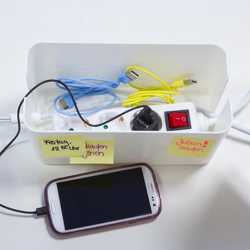 Lassen Sie jeglichen Kabelgewirr in der praktischen Kabelbox von LogiLink verschwinden. Im Nu sehen Wohnung und Büro viel aufgeräumter aus und die Steckdosenleisten stauben nicht zu. Besonders geeignet neben Schreibtisch, TV-Anlagen usw.