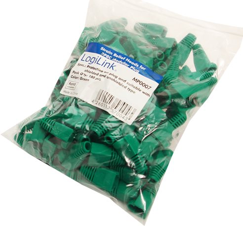 LogiLink Knickschutztülle für RJ45 Stecker, 5,5 mm, grün Kunststoffgehäuse, Inhalt: 100 Stück, in Polybeutel (MP0007)