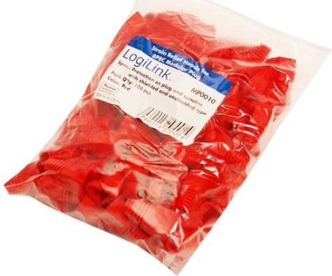 LogiLink Knickschutztülle für RJ45 Stecker, 5,5 mm, rot Kunststoffgehäuse, Inhalt: 100 Stück, in Polybeutel (MP0010)