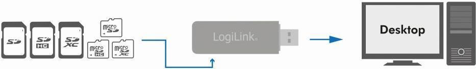 LogiLink CardReader USB 3.0 - Kartenleser (SD, microSD, SDHC, microSDHC, SDXC, microSDXC) - USB 3.0