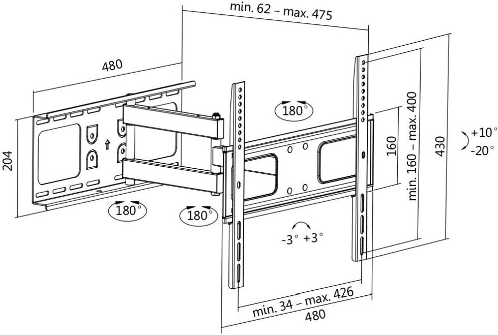 LogiLink BP0015 - Computermonitor/TV - 200 x 200 mm - 400 x 400 mm - 200 x 200,300 x 300,400 x 200,400 x 400 mm - -3 - 3 mm - -20 - 10° (BP0015)