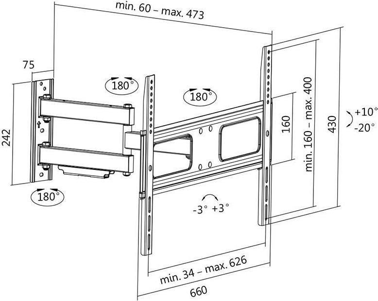 LogiLink BP0019 - Computermonitor/TV - 200 x 200 mm - 400 x 400 mm - 200 x 200,300 x 300,400 x 200,400 x 400,600 x 400 mm - -3 - 3 mm - -20 - 10° (BP0019)