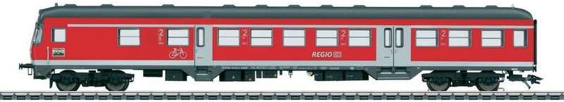 Vorbild: Steuerwagen 2. Klasse mit Fahrradabteil (Bnrdzf 477) der Deutschen Bahn AG. Bauart \"Silberling\" in verkehrsroter Nahverkehrslackierung. Modernisierter \"Karlsruher Kopf\" ohne ...