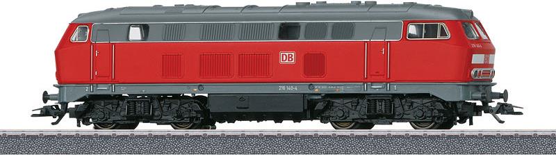 Vorbild: Diesellokomotive Baureihe 216 der Deutschen Bahn AG (DB AG). Ausführung in verkehrsroter Farbgebung.