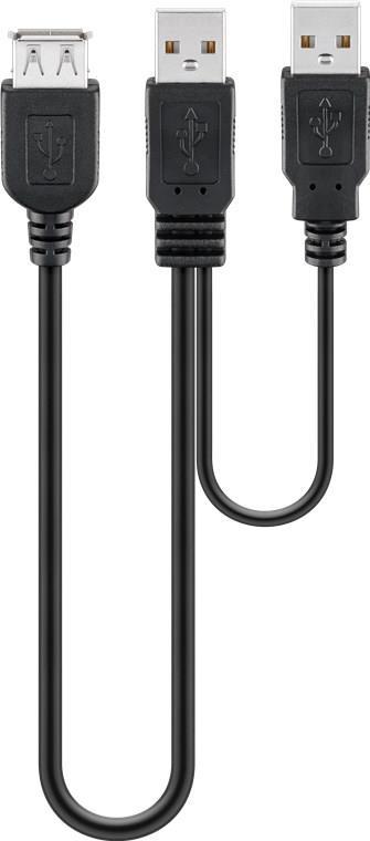 Wentronic Goobay USB 2.0 Hi-Speed Dual-Power Kabel, Schwarz, 0.3 m - USB 2.0-Stecker (Typ A) , USB 2.0-Stecker (Typ A) > USB 2.0-Buchse (Typ A) (93353)