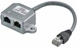 Der Anschlussverdoppler erlaubt einfach über ein CAT-Kabel zwei Ethernet-Leitungen zu führen (Cable-sharing). Das ist möglich, da die Hälfte der Drähte im Netzwerkkabel nicht genutzt wird. Der Anschlussverdoppler braucht keinen Strom, muss aber immer paarweise eingesetzt werden - einer an jedem Ende der Leitung. Das erste Stück vereinigt die Signale auf ein Kabel, das zweite Stück trennt sie wieder auf normale Netzwerkdosen. Das funktioniert jedoch nur, wenn man kein Gigabit-LAN und kein PoE nutzt. Dort werden nämlich mehr Drähte gebraucht und der Trick geht nicht.