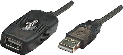 Schluss mit Entfernungsbeschänkungen beim Anschluss von USB-Geräten. Nutzen Sie MANHATTAN Hi-Speed USB 2.0 Repeater Kabel, um den USB-Anschluss Ihres Computers mit einem USB-Gerät an fast jeder beliebigen Stelle im Raum zu verbinden. Bis zu drei in Reihe geschaltete Kabelerweiterungen ermöglichen eine bis zu 30 m lange Verbindung.Kompatibel mit allen USB-Standards. Das MANHATTAN Hi-Speed USB 2.0 Repeater Kabel ist vollständig mit USB 1.1 und Hi-Speed USB 2.0 kompatibel, um für alle Geräte maximale Leistung zu gewährleisten. Schnelle und einfache Installation Plug-and-Play-fähig, vielseitig einsetzbar unter Windows/MAC und keine externe Stromversorgung oder Treiberinstallation notwendig. Diese Eigenschaften sorgen für größere Flexibilität beim Computer- und Peripherieaufbau sowie bei der Bürogestaltung.