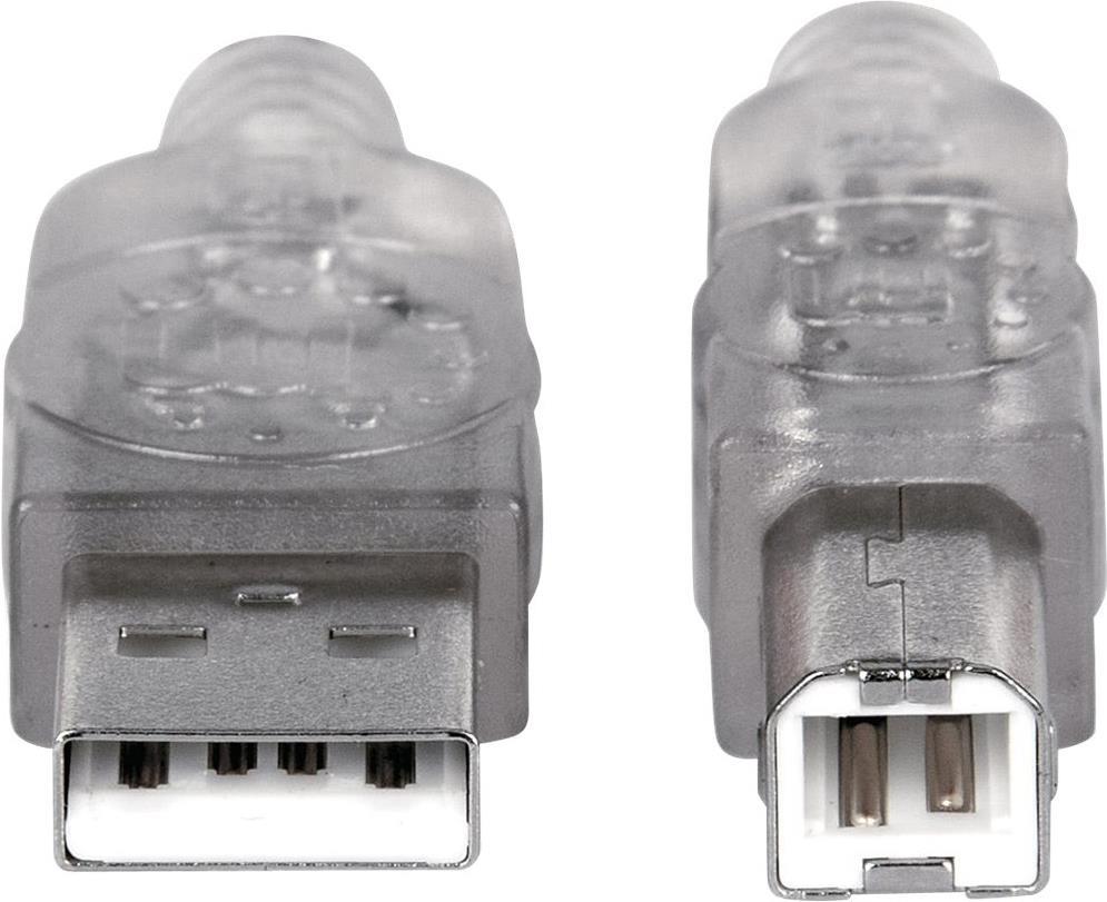 Das Manhattan Hi-Speed USB B Anschlusskabel verbindet schnell und einfach USB Peripherie und Accessoires mit einem PC oder Notebook. Es eignet sich ideal für die Nutzung mit externen Ausgabegeräten, Hubs und anderen Plug&Play Produkten. Mit einer Datenübertragungsrate von bis zu 480 Mbit/s in Verwendung mit einem Windows oder Mac System sorgt das Manhattan Hi-Speed USB B Anschlusskabel für eine schnelle und zuverlässige Datenübertragung. Vergoldete Kontakte samt vergossener PVC Tülle und Zugentlastung sorgen für eine stabile Verbindung, maximale Leitfähigkeit und minimalen Datenverlust bei verringerten EMI-Interferenzen.