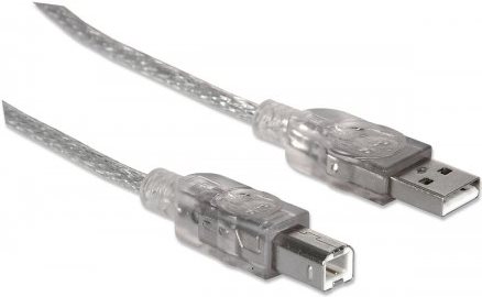 Manhattan - USB-Kabel - USB (M) bis USB Typ B (M) - USB2.0 - 5,0m - Silber (345408)