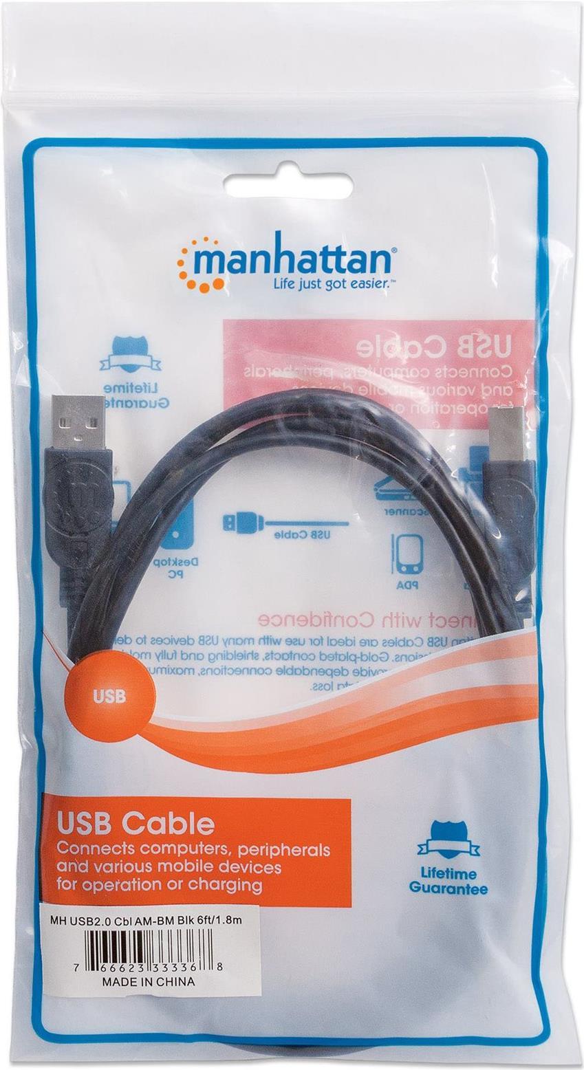 Zuverlässige Verbindungen. MANHATTAN Hi-Speed USB 2.0 Kabel verbinden ganz einfach USB-Peripheriegeräte und Zubehör mit PCs und Notebooks. Ideal für die Nutzung von USB-fähigen Laufwerksgehäusen, Hubs und anderen Hot-Swap/Plug & Play-Geräten. MANHATTAN Hi-Speed USB 2.0 Kabel unterstützen hohe Datenübertragungsraten bis zu 480 Mbit/s auf Windows- und MAC-Systemen, für schnelle, zuverlässige Übertragungen. Vergoldete Kontakte, Schirmung, und vergossene PVC-Stecker mit Zugentlastung sorgen für beste Konnektivität und störungsfreien Betrieb ohne Datenverluste.