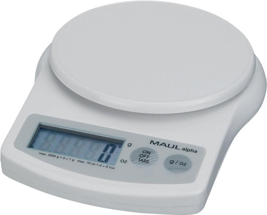 MAUL Briefwaage MAULalpha, Tragkraft: 5.000 g, mit Batterie Gehäsue aus Kunststoff, umschaltbar g/oz, Ein-Tasten- (1645002)