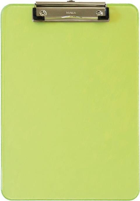 MAUL Klemmbrett MAULneon, DIN A4, transparent-grün aus Kunststoff, flache, vernickelte Bügelklemme - 1 Stück (23406 51)