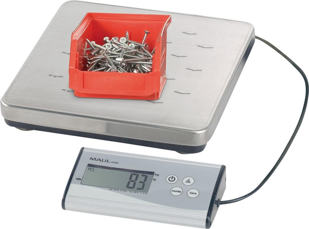 MAULcargo Paketwaage, Tragkraft: 50 kg, grau mit separatem Bedienpult und Netzteil, Wiegeteller aus - 1 Stück (17950 09)