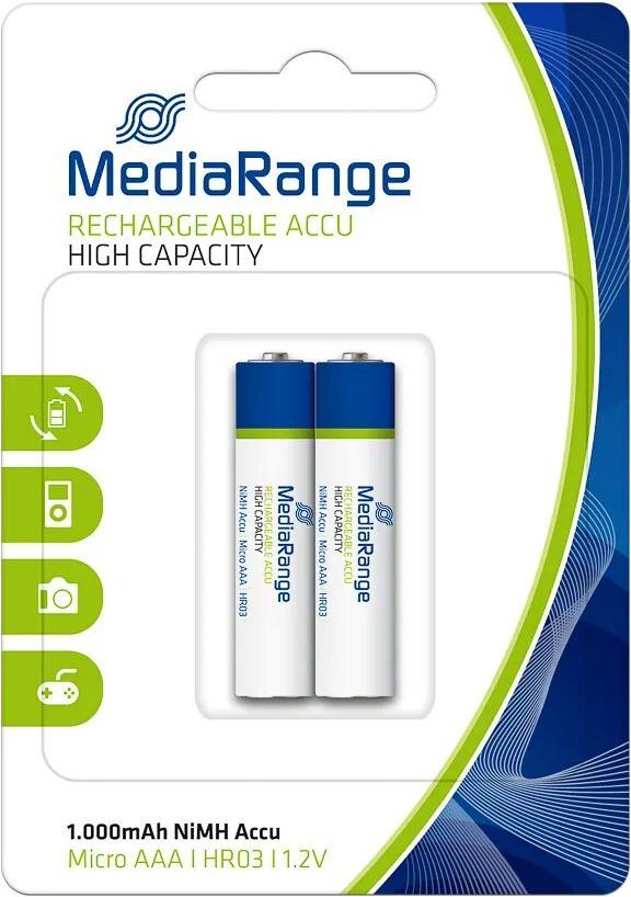 MediaRange MRBAT122 - Batterie 2 x AAA - NiMH - (wiederaufladbar) - 1000 mAh (MRBAT122)