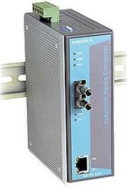 MOXA Industrial Ethernet Medien Konverter, mit Alarmfunktion 1 x RJ45 10/100BaseTX - 1 x LWL-ST 100BaseFX Multimode Stromversorgung über Terminal Block Anschluss, mit Hutschienenbefestigung, robustes Metallgehäuse, ...