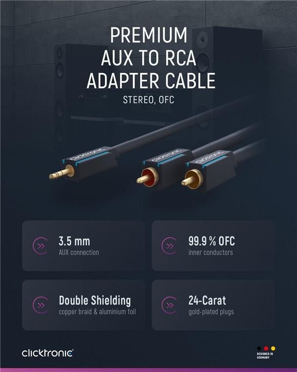 Mit dem Cinch-Klinke-Adapter lassen sich viele MP3-Player, Smartphones, Laptops und iPads an die HiFi-Anlage anschließen. Dank mehrfacher Signalschirmung, reiner Materialien und präziser Verarbeitung ist die klanglich überzeugende Stereo Audioverbindung in Sekundenschnelle hergestellt -und die mitgebrachte Lieblingsmusik lässt sich im Wohnzimmer genießen.