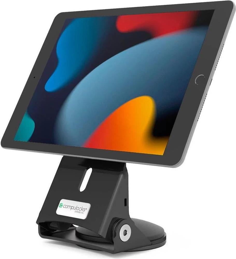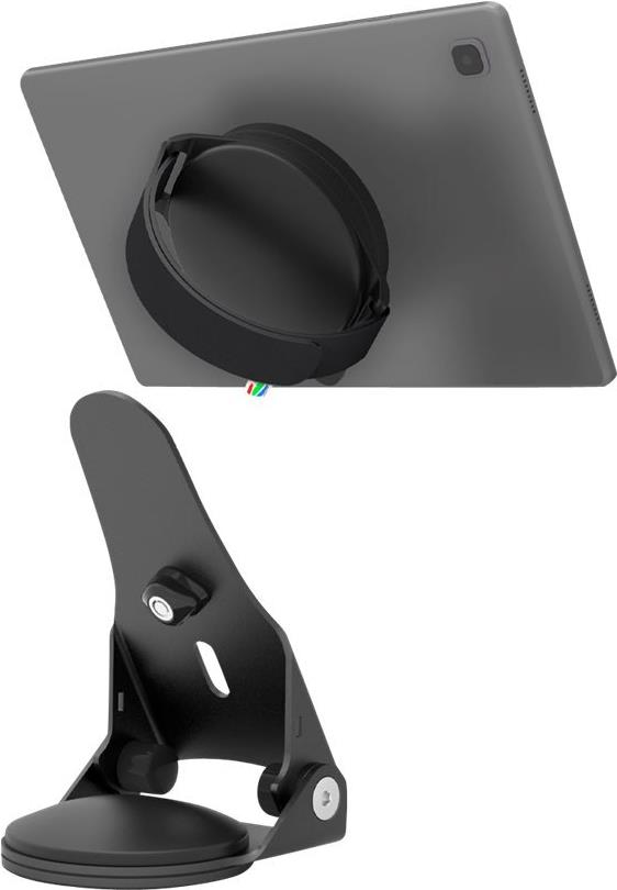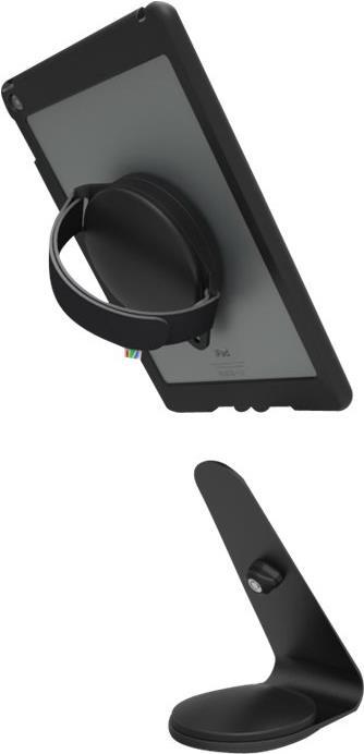 Mit dem Grip and Dock können Sie Ihr Tablet am POS sichern. Der Grip and Dock ist ein zweiteiliges System bestehend zum Einen aus einer Handschlaufe, die mit der Rückseite des Geräts verbunden wird. Das zweite ist ein abgewinkeltes Drehgestell mit einem Schnellverschluss, für eine sichere \"Grab & Go\"-Lösung. Die Handschlaufe wird an der Rückseite des Tablets angebracht und auf den Grip and Dock-Ständer geschoben. Ihr Gerät ist durch ein integriertes Schloss gesichert. Der Ständer selbst kann auf den Tisch geklebt oder geschraubt werden.