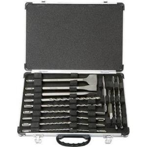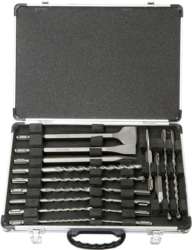 Das 17-teilige Set besteht aus 12 Hammerbohrern und 5 Meißeln. Alle verfügen über eine SDS-PLUS-Aufnahme zum schnellen und werkzeuglosen Wechsel. Ausgeliefert wird das Set in einem Alu-Transportkoffer für eine ordentliche und sichere Verwahrung sowie Transport.
