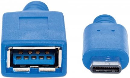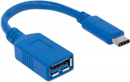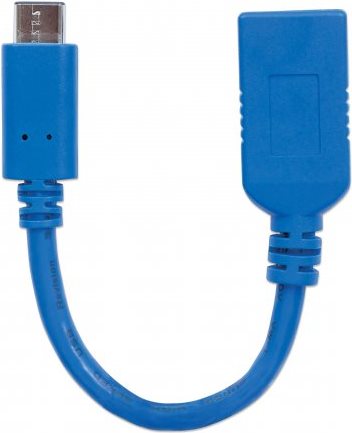 Manhattan - USB-Adapter - USB Typ C (M) - 9-polig USB Typ A (W) - 15cm (USB / USB2.0 / USB3.0 / USB 3,1) - geformt - Blau (353540)