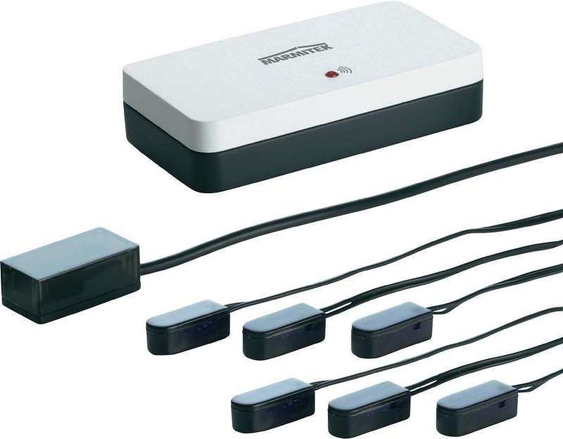 Marmitek Insvisible Control 6 ermöglicht die Bedienung Ihrer Geräte in einem geschlossenen Schrank. Das Set setzt sich aus einem Empfänger, einem Modul und 6 Emitter LED zusammen. Die Emitter Led wird auf jedes Gerät, das Sie bedienen möchten geklebt. Von nun an können Sie mit Ihrer eigenen Fernbedienung bis zu 6 Geräte in einem geschlossenen Schrank bedienen.